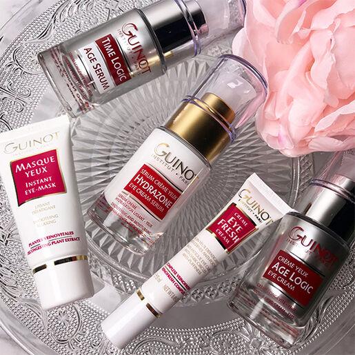 ギノーオリジナル美容機器と、ハンドテクニックのコラボレーションで、目元のあらゆるエイジングサインにアプローチして若々しい印象へと導きます。