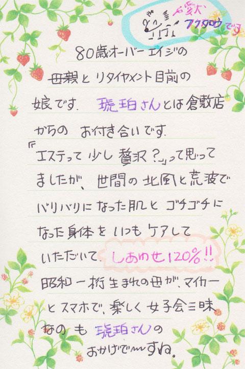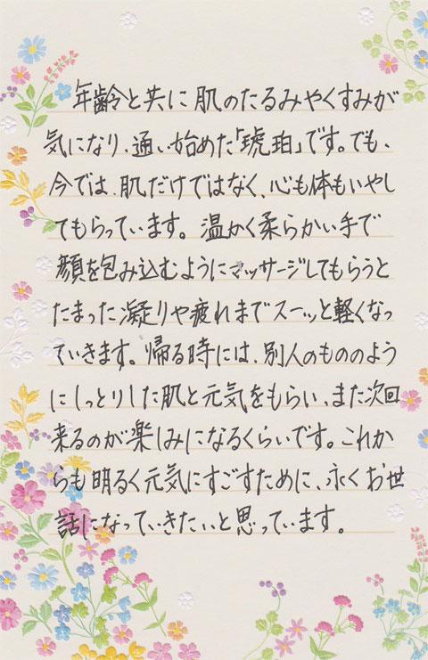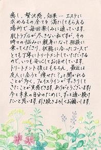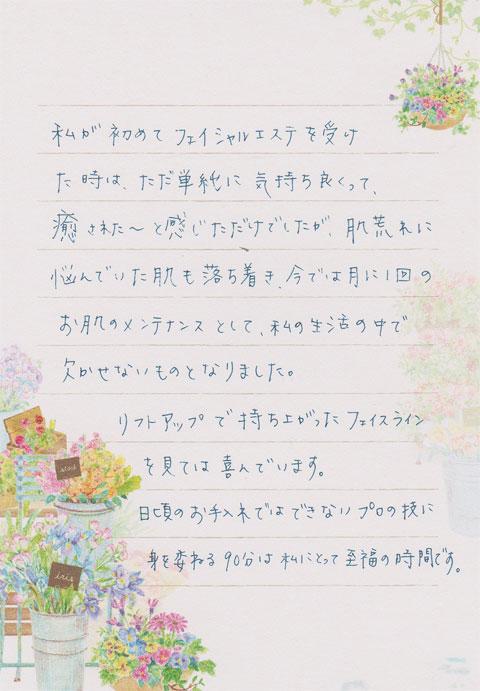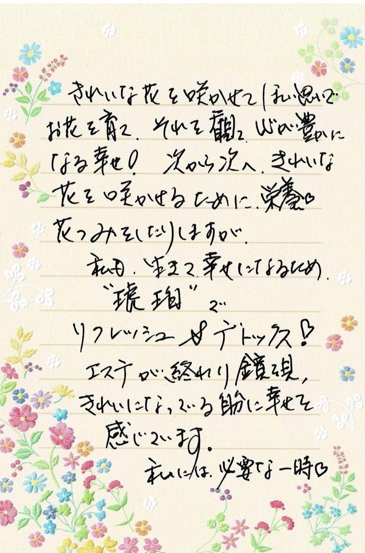 クレンジング⇒洗顔⇒角質ケア⇒⇒筋膜パック⇒ハンドマッサージ⇒フェイシャルマッサージ⇒海藻引き締めパック⇒デコルテマッサージ⇒整肌