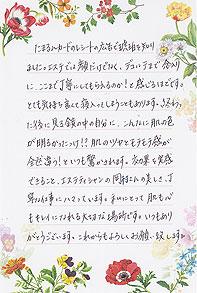 クレンジング⇒洗顔⇒角質ケア⇒ディープクレンジング⇒デコルテマッサージ⇒フェイシャルマッサージ⇒パック⇒ハンドマッサージ⇒整肌