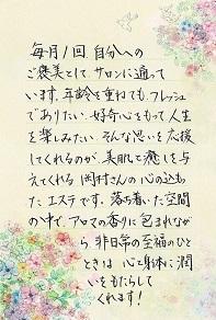 クレンジング⇒洗顔⇒角質ケア⇒目元イオン導入・低周波⇒デコルテマッサージ⇒フェイシャルマッサージ⇒目元専用パック+肌全体パック⇒ハンドマッサージ⇒整肌